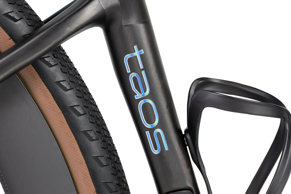 ZIPP 303 XPLR S wheels give the Taos a lively yet planted feel. Quick to accelerate, stable in crosswinds, and ready for rough pavement or gravel detours. Wrapped in Goodyear XPLR Inter 45mm tires the ride stays connected to the road while smoothing out chatter.