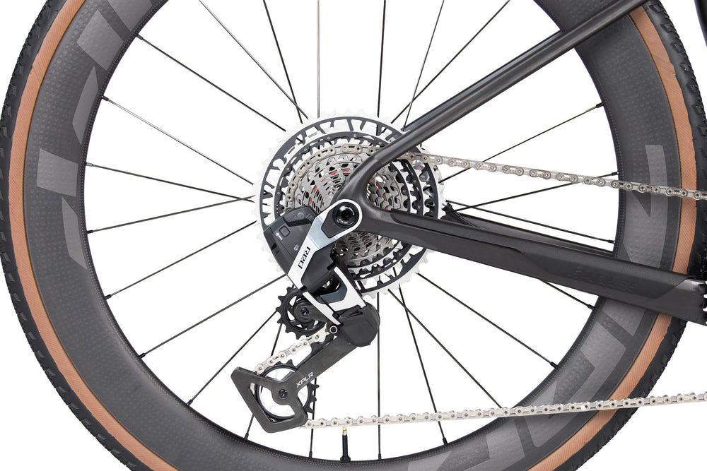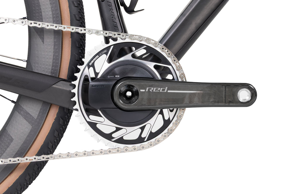 SRAM’s RED XPLR AXS electronic groupset delivers flawless wireless shifting with integrated power measurement, paired ZIPP 303 XPLR SW wheels to balance speed and control across any surface.