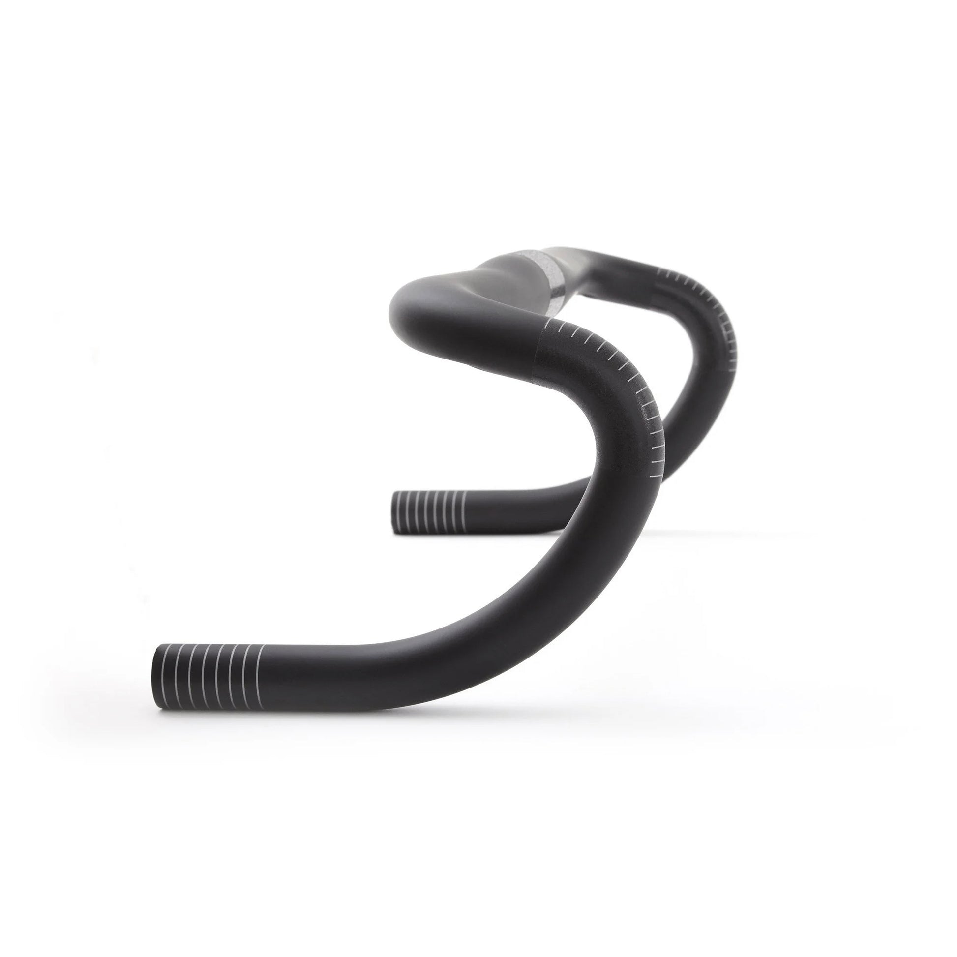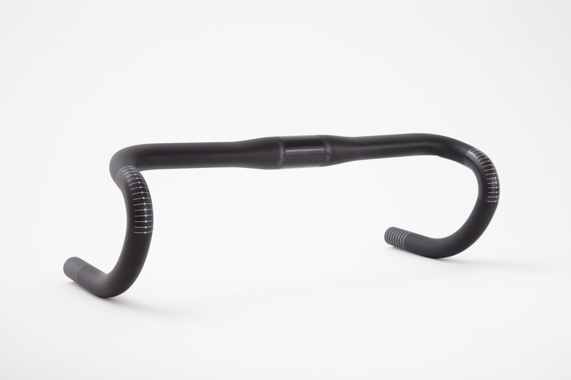 The handlebar’s top has a gentle rearward sweep and oval profile for a natural hand position and comfort. The 35mm stem clamping area creates a solid union with the stem and fork. The bend has a short extension and shallow drop that compliments modern shift/brake lever combinations. This makes the ideal perch for the rider’s hands regardless of build kit. The drops have an extended return creating more hand positions for greater comfort. There are also trim lines on the bar termination at 5mm increments for a customized fit.